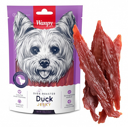 Wanpy Duck Jerky itlər üçün qurudulmuş ördək 100 qr Wanpy Duck Jerky itlər üçün təbii müalicədir, burada qurudulmuş ördək filesi №1 tərkib hissəsidir. Bütün cins itlərin və 3 aydan yuxarı olan balaların əsas pəhrizinə dadlı və sağlam əlavə kimi nəzərdə tutulub. Xüsusilə qida allergiyası və toyuq həssaslığı olan ev heyvanları üçün tövsiyə olunur