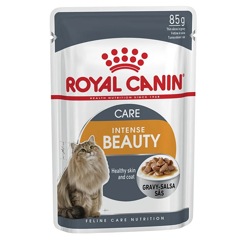 Royal Canin Feline Health Nutrition Intense Beauty Gravy 1 yaşdan 7 yaşa qədər pişiklər üçün gözəl tük saxlamaq üçün tam və balanslaşdırılmış qidadır. Pəhrizdə kürkün yenilənməsini və möhkəmlənməsini stimullaşdıran geniş çeşidli qida maddələri var. Yetkin pişiklər və pişiklər, xüsusilə sterilizasiya edilmiş və ya sterilizasiya edilmiş pişiklərdə urolitiyaz inkişaf edə bilər. Xüsusi pəhriz pişikləri canlılığını qorumaq üçün lazım olan bütün qidalarla təmin etməlidir, eyni zamanda onların ideal çəkisini saxlamağa kömək etməlidir. Parlaq kürk üçün kompleks.