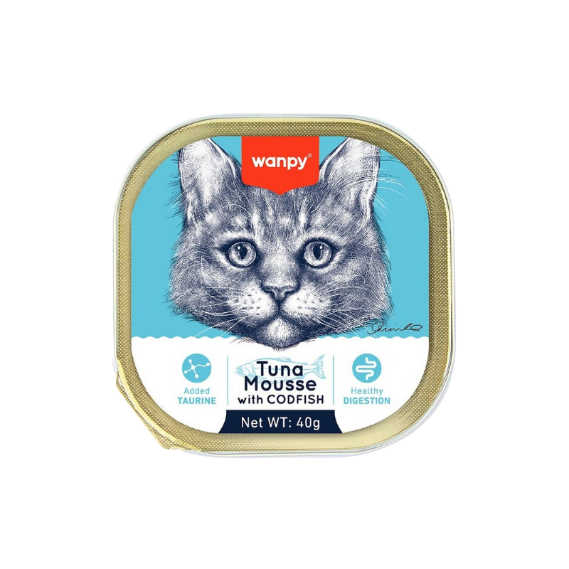 Wanpy pişiklər üçün ton və treska balıqları ilə nəm yem.