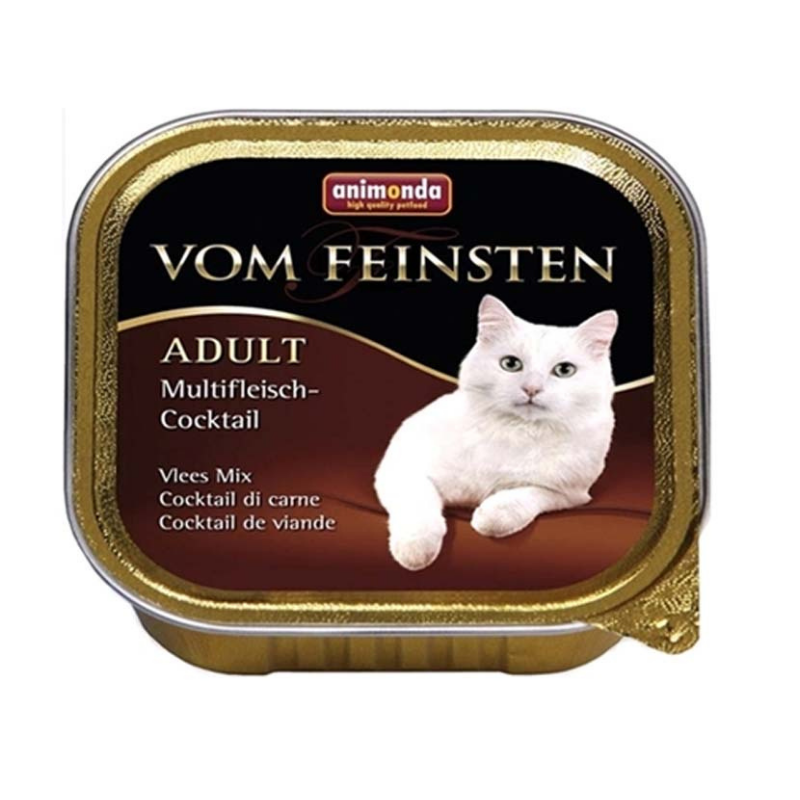 Animonda Vom Feinsten Yetkin Pişik (ət kokteyli), 100 q Müxtəlif növ ətlərdən hazırlanmış konservləşdirilmiş pişik yemi yetkin pişiklər üçün unikal tam superpremium sinif qidadır. Yalnız yüksək keyfiyyətli təbii maddələrdən hazırlanmışdır. Zərif pastanın incə dadı ev ovçunuzu sevindirəcək. Tərkibi: 63% ət və ət məhsulları (3% mal əti, 10% quzu, hinduşka, toyuq, dovşan), minerallar
