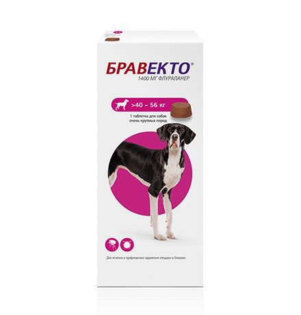 Bravecto® 40-56 kq itlər üçün istifadə olunur: gənələrlə yoluxmanın müalicəsi və qarşısının alınması üçün (Ixodes ricinus, Ixodes hexagonus, Ixodes scapularis, Ixodes holocyclus, Dermacentor reticulatus, Dermacentor variabilis və Rhipicephalus sanguineus (felisefalus sanguineus) və fleliseplideshalishalisC); ixodid gənələrin yaratdığı birə və akarozun səbəb olduğu allergik dermatitin kompleks müalicəsində; Demodex spp. səbəb olduğu demodikozun müalicəsi üçün; Sarcoptes spp. tərəfindən törədilən sarkoptik uyuzun müalicəsi üçün; Otodectes spp. səbəb olduğu otodektozun müalicəsi üçün; babezioz riskini azaltmaq üçün.
