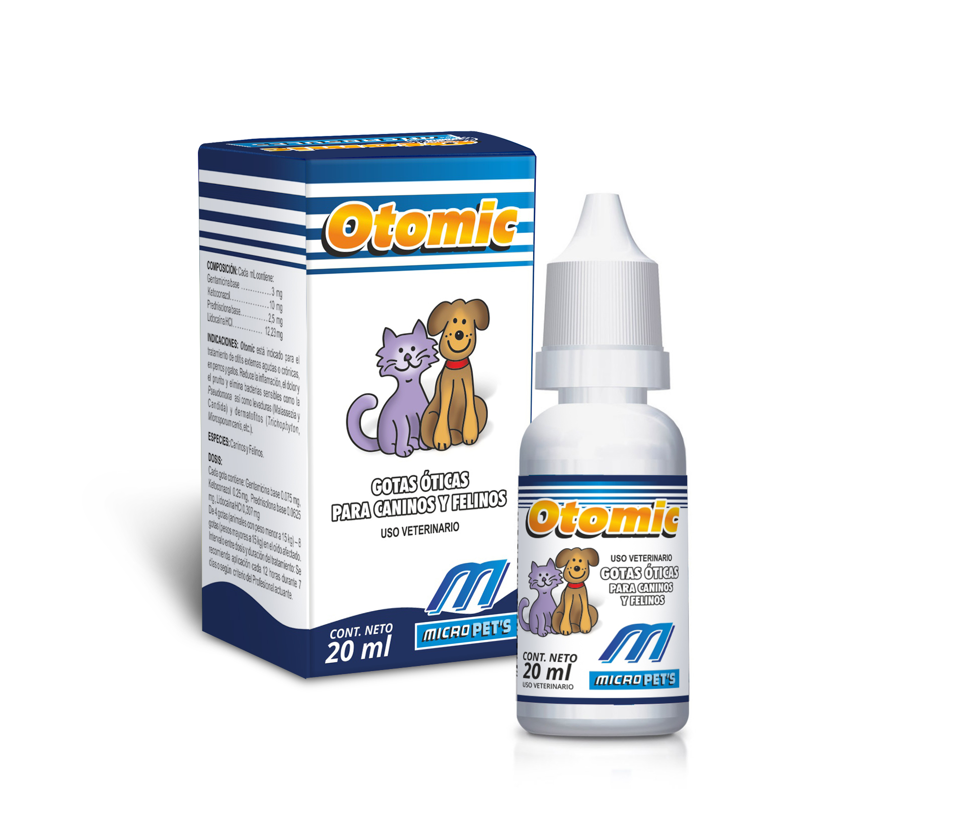 Otomic itlər və pişiklərdə kəskin və ya xroniki xarici otitin müalicəsi üçün göstərilir. O, iltihabı, ağrıları və qaşıntıları azaldır və Pseudomonas kimi həssas bakteriyaları, həmçinin maya (Malassezia və Candida) və dermatofitləri (Trichophyton, Microsporum canis və s.) yox edir.