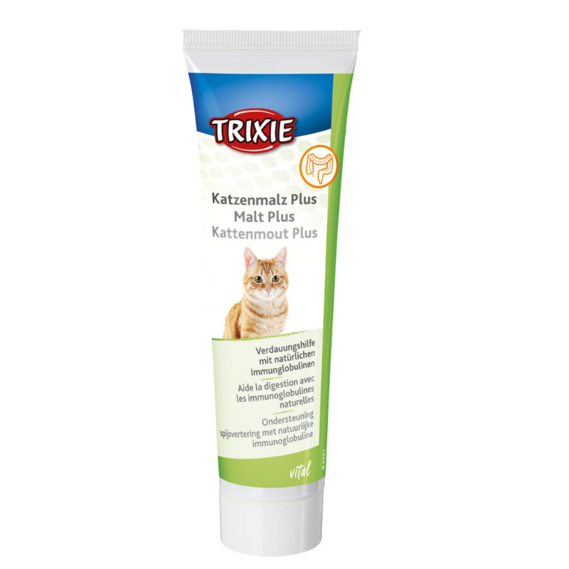 Trixie Cat Malt Plus Yün pastası, 100 q Özofagusa kömək edir və saçları udmamağa kömək edir. Təbii immunoqlobulin və prebiotik maddələrlə. İmmunoqlobulinlər immunitet sistemini gücləndirir. Həzmi yaxşılaşdırır və udulmuş saçlardan topaqların əmələ gəlməsinin qarşısını alır.