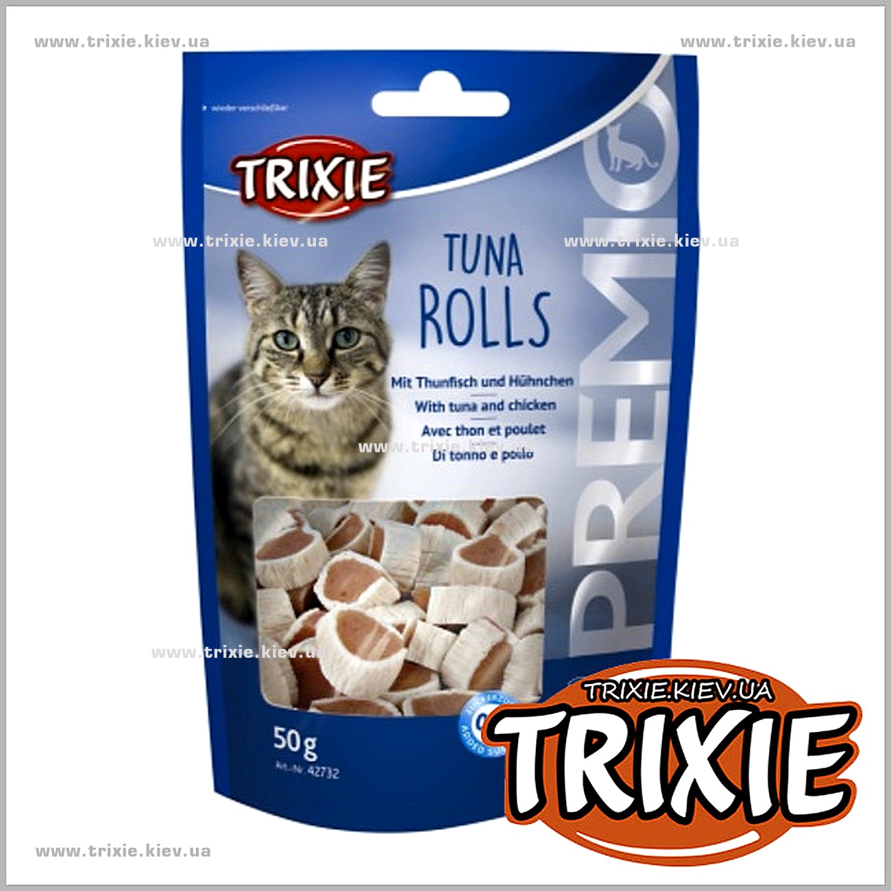 Pişiklər üçün rulonlar TRIXIE - Premio tuna + toyuq 50qr. Tuna və toyuq ilə Ətin tərkibi 30%, balıq 53% Bağlı çantada