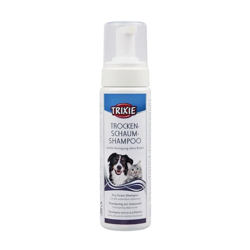 İt və pişiklər üçün quru şampun-sprey Trixie Trocken Schaum Şampun 450 ml.Quru şampun suya çıxışın məhdud olduğu hallarda, məsələn, səyahət, yolda əvəzolunmazdır. Həmçinin, bu köpük şampunu qorxan və ya su ilə təmasda olmağı sevməyən heyvanlar üçün uyğundur, buna görə də ev heyvanınız üçün stresli bir vəziyyət yaratmamaq üçün quru şampundan istifadə edin. Şampun xoşagəlməz qoxuları mükəmməl neytrallaşdırır, yunun qayğısına qalır. Yaxalamaq və ya silmək lazım deyil. Quru şampun 12 həftəlikdən bala və pişiklər üçün istifadə edilə bilər. İstifadə qaydası: Köpüyü quru saça çəkin və 3-5 dəqiqə sürtün, sonra yaxşıca fırçalayın.