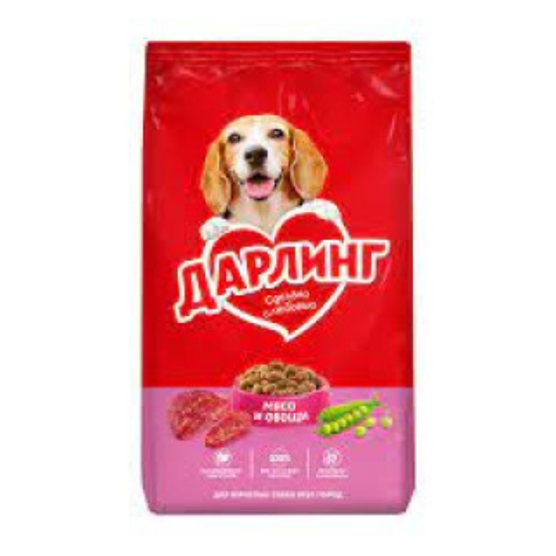 Darling Dog Mal əti və Tərəvəzlə yetkin itlər üçün nəzərdə tutulmuş tam, quru qidadır. Köpəyin bütün qida ehtiyaclarını qarşılayan 100% tam və balanslaşdırılmış pəhriz. Tərkibi: dənli bitkilər, ət və heyvan məhsulları (8%), bitki mənşəli məhsullar, yağlar və yağlar, bitki mənşəli protein ekstraktları, minerallar və tərəvəzlər (0,06% qurudulmuş yerkökü və 0,06% quru noxud, 0,8% tərəvəzə uyğun olaraq) *16% rehidratlaşdırılmış ət və heyvan məhsullarına uyğundur, min. 4 ət Analitik tərkibi: protein 17%, yağ tərkibi: 7%, xam kül: 8%, xam qatar 3%. Hər kq-a görə qida əlavələri: mq/kq: Fe (E1):97; I (E2): 2.4; Cu (E4):28; Mn (E5):13; Zn (E6): 315; Se (EB): 0,34 1J/kq: Vit A (E672) 9 510; Vit D3 (E671): 640.