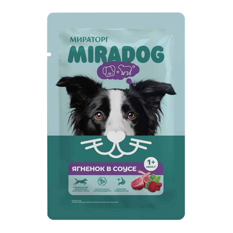 Miradog Konservləşdirilmiş Kompleks İt Maması, Bütün Cins Yetkin İtlər üçün Quzu Əti Souslu, 75q