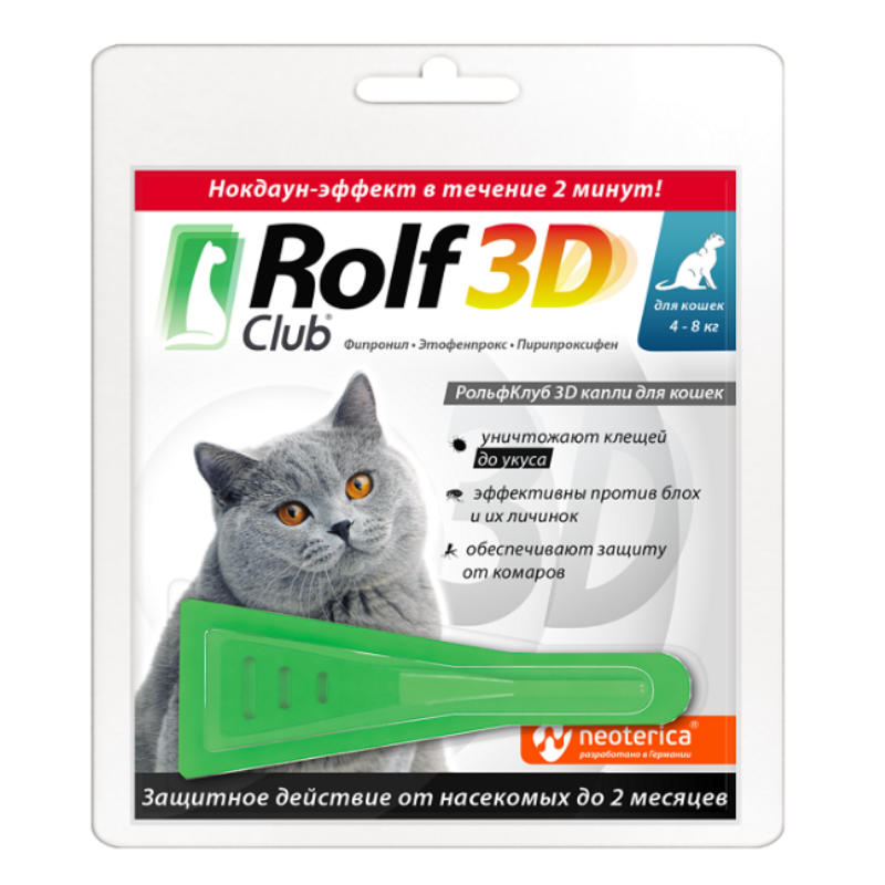 Pişiklər üçün RolfKlub 3D damcıları insektisidlər qrupuna aiddir. Dərmanın tərkib hissəsi olan fipronil, etofenproks və piriproksifen pişiklərdə parazitlik edən pişiklərin, solğunların, notoedrozların, otodekozların və ixodid gənələrin cinsi yetkin və yetişməmiş (larva) inkişaf fazalarına təmasda insektoakarisid təsir göstərir, həmçinin onların qorunmasını təmin edir. qansoran uçan həşəratlardan (ağcaqanadlar) heyvanlar. , midges və ağcaqanadlar). Pişiklər üçün Rolf Club 3D damcı dərmanı açıq bir yıxılma effektinə malikdir, yıxılma vəziyyətinin başlama müddəti təxminən 2 dəqiqədir ki, bu da hücum zamanı gənə və həşəratların sorulmasının (dişlənməsinin) qarşısını alır. Qansoran uçan həşəratlara qarşı kovucu təsir göstərir. Fipronilin təsir mexanizmi ektoparazitin GABA-dan asılı reseptorlarında xlorid ionlarının keçidini pozmaq, sinir impulslarının ötürülməsini və sinir sisteminin fəaliyyətini pozmaqdan ibarətdir ki, bu da iflic və artropodların ölümünə səbəb olur.
