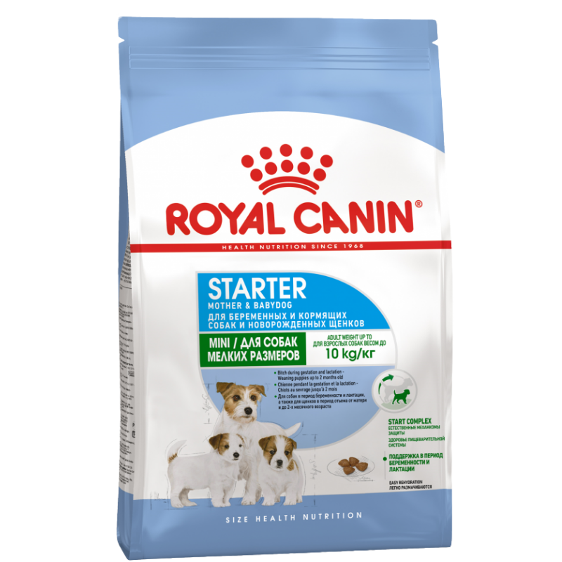 Royal Canin Mini Starter Mother & Babydog Kiçik cins hamilə və südverən it və bala it üçün quru yem. Hamiləlik və laktasiya dövründə olan kiçik cins itlər və süddən kəsilmiş 2 aya qədər bala itlər üçün tam rasionlu quru yem. Kiçik cins hamilə itləri və bala itləri onların xüsusi qidalanma ehtiyaclarına uyğun olan tam rasionlu rasion ilə təmin etmək vacibdir. Yem hamiləliyin və laktasiya dövrünün ikinci yarısında olan kiçik cins itlər (maksimal çəki 10 kq), həmçinin 2 aya qədər süddən kəsilmiş bala itlər üçün lazım olan bütün qida maddələrini ehtiva edir. Yemin tərkibindəki Start Kompleksi bala itin ehtiyacını qarşılayan bütün qida maddələrinin eksklüziv birləşməsi və Royal Canin tərəfindən aparılan innovativ tədqiqatların nəticəsidir. Əlavə qida maddələri ilə gücləndirilmiş formul bala itin həzm sistemini və immunitetini dəstəkləyir. Royal Canin Mini Starter rasionu hamiləliyin sonu və laktasiya dövründə itin yüksək enerji ehtiyacını qarşılayır. Kroketlər asanlıqla sıyıq konsistensiyasına kimi islanırlar və cəlbedici dada malikdirlər. Məhsulun teksturası süddən kəsilmə və bərk qidalanmaya keçid zamanı bala itlər üçün optimaldır.