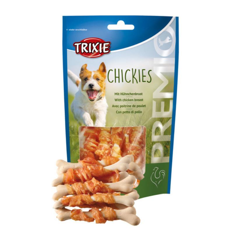Trixie Chickies it yeməkləri dördayaqlı dostunuzun pəhrizinə əla əlavə olacaq dadlı və sağlam yeməkdir. 100 q paketdə toyuq ətindən alınan təbii zülallar, həmçinin kalsium var ki, bu da allergiyaya meylli itlər üçün idealdır.
